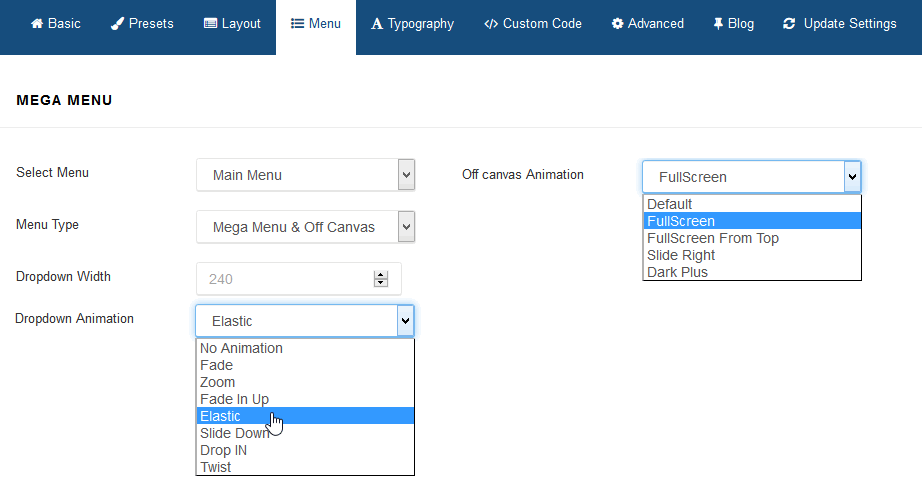 菜單是一個易于使用的菜單工具,為您的網站創建美麗,定制的菜單,也與模塊內。這也促進了SEO和用戶的參與。在模板設置中,您可以訪問4個選項,更高級的設置是“隱藏”在菜單管理器內的每個菜單項-所以請檢查也有。