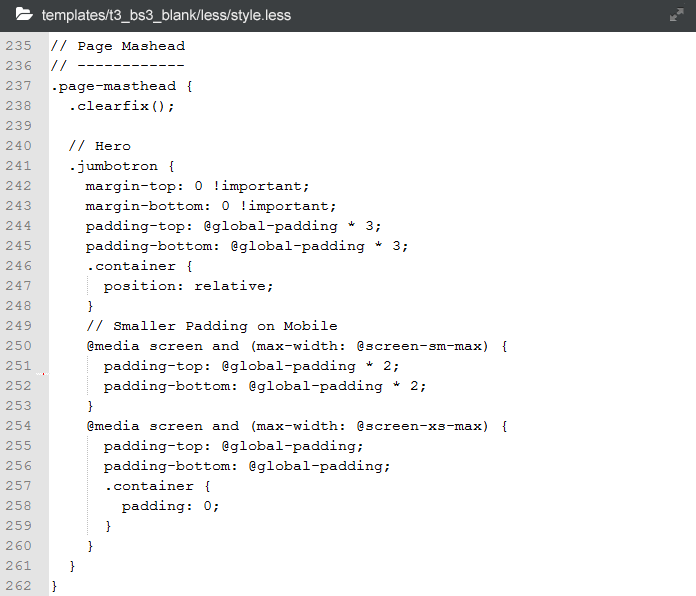 你可以為添加的擴展字段添加樣式,可以使用為擴展字段使用Class標簽來定義樣式,在 masthead.php 文件中 .less file in your template LESS folder at templates/t3_bs3_blank/less.