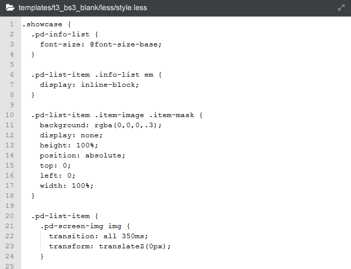 2.3添加樣式的額外字段 你可以創建額外的字段在任何添加樣式。less的文件在你的模板不在文件夾模板/t3_bs3_blank /less。