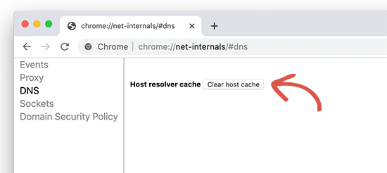 這將加載Chrome的網絡內部設置頁面。在這里,您需要單擊“清除主機緩存”按鈕,然后Chrome將清除其DNS緩存。
